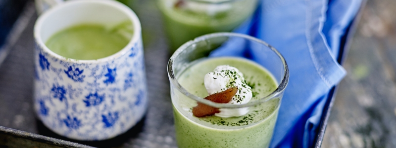 A healthy, seasonal appetizer featuring asparagus, the star of spring. Lightly sautéed in olive oil, the asparagus reveals its delicate flavor before being blended into a smooth, creamy preparation. The melting texture of this savory panna cotta is enhanced by our Pressed olive & fresh mint, adding a burst of botanical freshness.